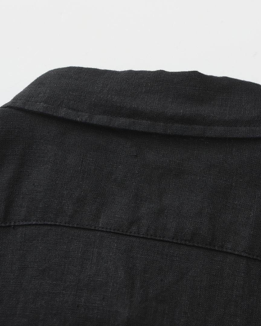 • Linen Shirt - Black: Crafted from 100% high-quality linen, this breezy shirt offers unparalleled comfort and sophistication.